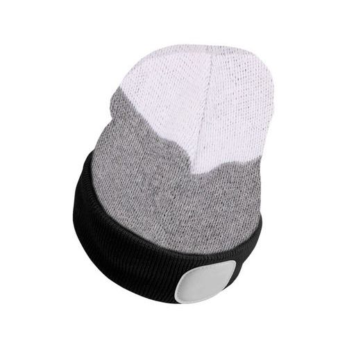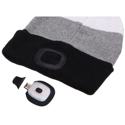 Čiapka s čelovkou 180lm, nabíjacia, USB, univerzálna veľkosť, bavlna/PE, čierna/sivá/biela