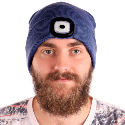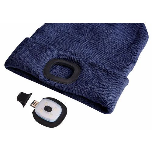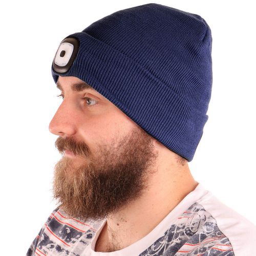 Čiapka s čelovkou 45lm, nabíjací, USB, univerzálna veľkosť, bavlna/PE, modrá