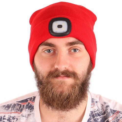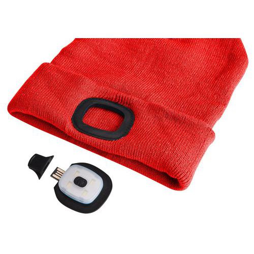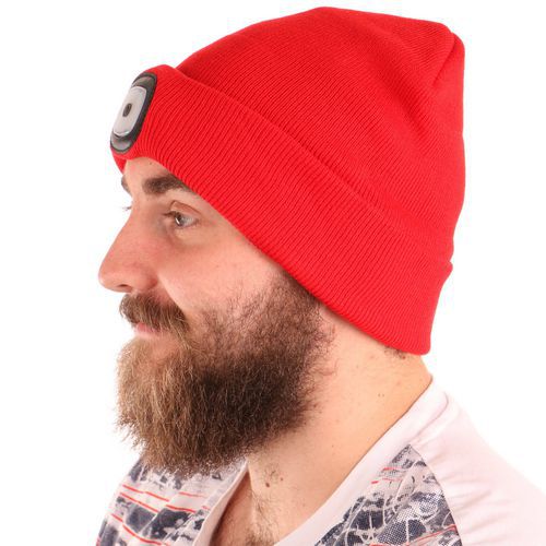 Čiapka s čelovkou 45lm, nabíjací, USB, univerzálna veľkosť, bavlna/PE, červená