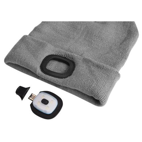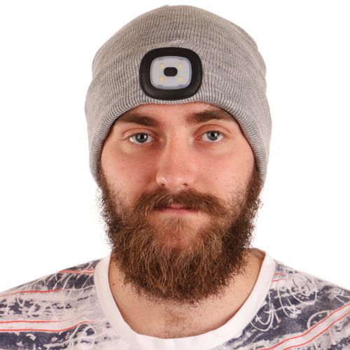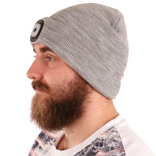 Čiapka s čelovkou 45lm, nabíjací, USB, univerzálna veľkosť, bavlna/PE, svetlo šedá
