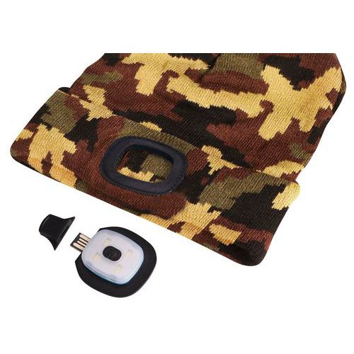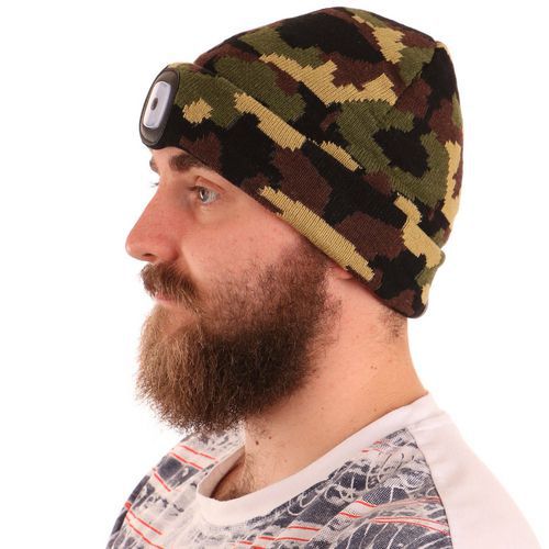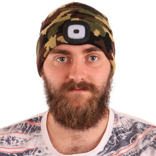 Čiapka s čelovkou 45lm, nabíjací, USB, univerzálna veľkosť, bavlna/PE, maskáčová