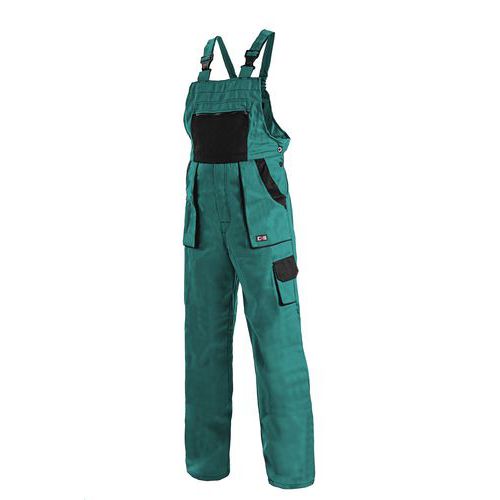 Dámske montérkové nohavice CXS s náprsenkou, zelené/čierne