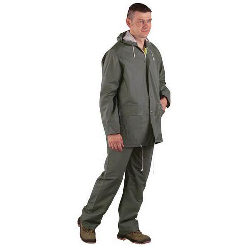 - Nepremokavá súprava bundy a nohavíc s dvojitou povrchovou úpravou (bavlnený podklad z PVC a polyesteru).