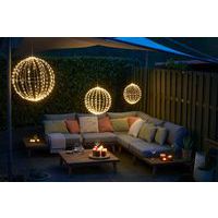 - Originálna vianočná dekorácia s 3D kovovou svetelnou guľou priemeru 50 cm s teplými bielymi LED diódami.