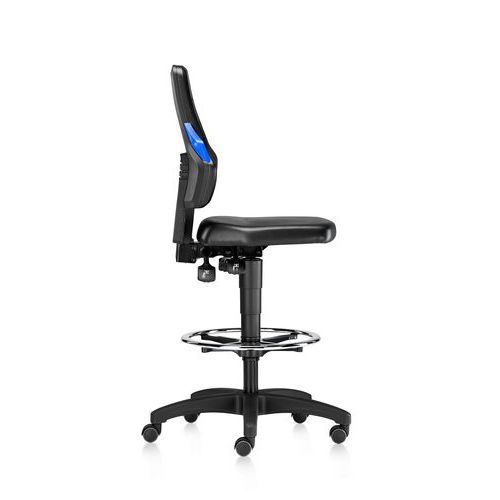 | Názov produktu | Dielenská stolička Bimos Ergoconfort Vinyl s podnožkou a mäkkými kolieskami |