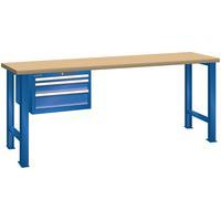 Dielenský pracovný stôl LISTA, 1500x700x840mm, 3 zásuvky, nosnosť 600 kg, fluorescenčná modrá