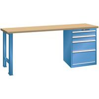 Dielenský pracovný stôl LISTA, 1500x700x840mm, 4 zásuvky, nosnosť 1500 kg, modrá