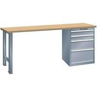Dielenský pracovný stôl LISTA, 1500x700x840mm, 4 zásuvky, nosnosť 1500 kg, tmavo šedá