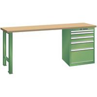Dielenský pracovný stôl LISTA, 1500x700x840mm, 5 zásuviek, nosnosť 1500 kg, zelená
