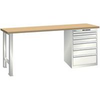 Dielenský pracovný stôl LISTA, 1500x700x890mm, nosnosť 1500 kg, 6 zásuviek, svetlo šedá