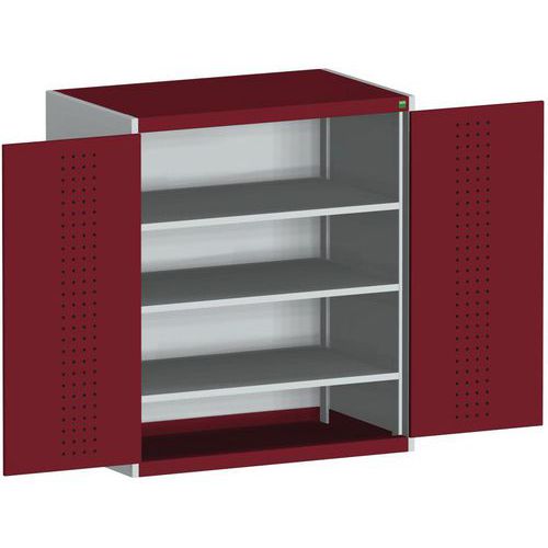 Dielenská skriňa Bott Cubio, 120 x 105 x 65 cm, perfo dvere, šedá-červená