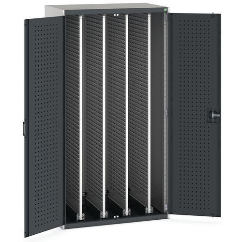 Dielenská skriňa Bott Cubio s výsuvnými perfopanelmi, 200 x 105 x 65 cm, plné dvere, šedá-antracit