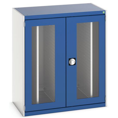 Dielenská skriňa Bott Cubio s výsuvnými perfopanelmi, 120 x 105 x 65 cm, priehľadné dvere, šedá-modrá