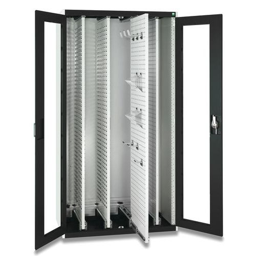 Dielenské skrine Bott Cubio s výsuvnými perfopanelmi, priehľadné dvere