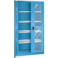 Dielenské skrine LISTA s policami, 1000x500x1950mm, dvere s plexisklom, svetlo modrá