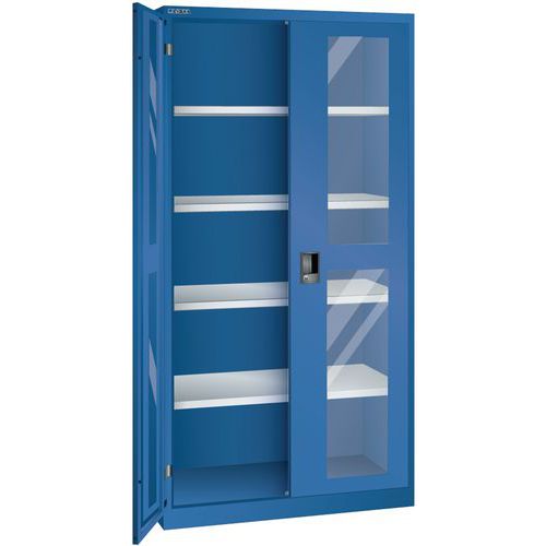 Dielenské skrine LISTA s policami, 1000x500x1950mm, dvere s plexisklom, tmavo modrá