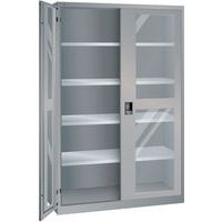 Dielenská skriňa LISTA s policami, 1250x400x1950mm, dvere s plexisklom, šedá/strieborná