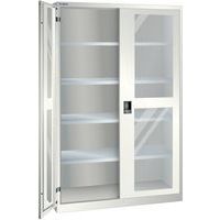 Dielenská skriňa LISTA s policami, 1250x400x1950mm, dvere s plexisklom, biela