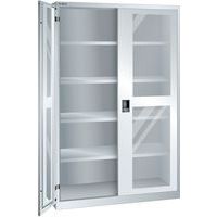 Dielenská skriňa LISTA s policami, 1250x500x1950mm, dvere s plexisklom, sivá