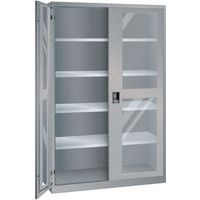 Dielenská skriňa LISTA s policami, 1250x500x1950mm, dvere s plexisklom, šedá/strieborná