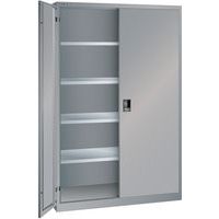 Dielenská skriňa LISTA s policami, 1250x580x1950mm, plné dvere, šedá strieborná