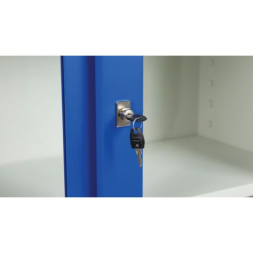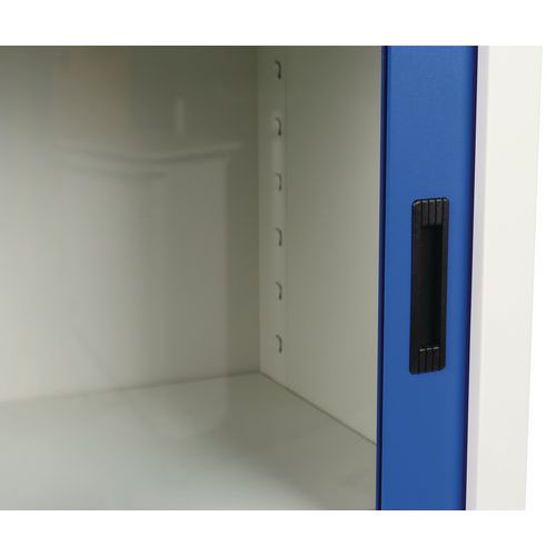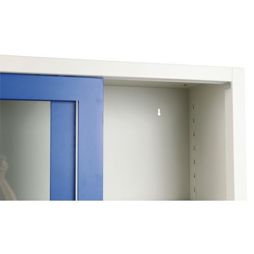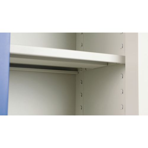 - Zvárané skrine so štyrmi výškovo prestaviteľnými policami.