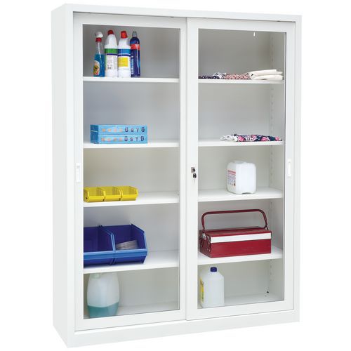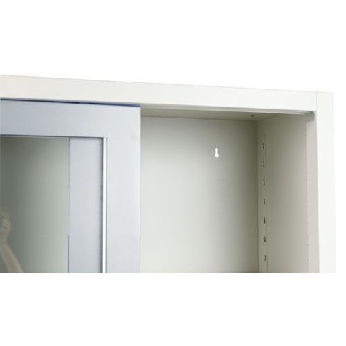 - Zvárané skrine so štyrmi výškovo prestaviteľnými policami.