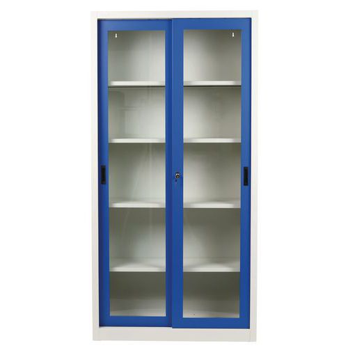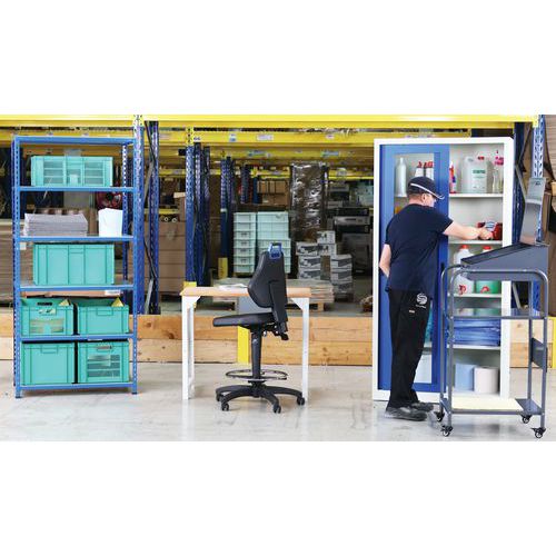 - Zvárané skrine so štyrmi výškovo prestaviteľnými policami.