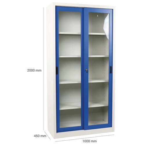Dielenská skriňa na náradie Manutan Expert, 200 x 100 x 45 cm, sivá/modrá