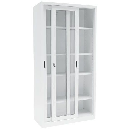 - Zvárané skrine so štyrmi výškovo prestaviteľnými policami.