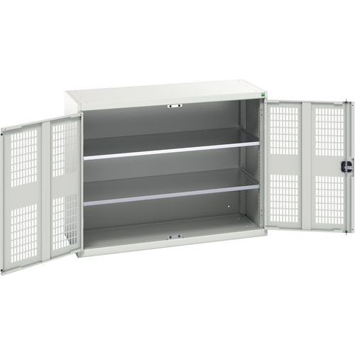 Dielenská skriňa policová Bott Verso, drôtené dvere, 2 police, 100 x 130 x 55 cm, šedá-šedá