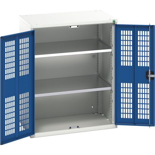 Dielenská skriňa policová Bott Verso, drôtené dvere, 100 x 80 x 55 cm, 2 police, šedá-modrá