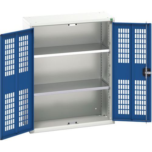 Dielenská skriňa policová Bott Verso, drôtené dvere, 100 x 80 x 35 cm, 2 police, šedá-modrá