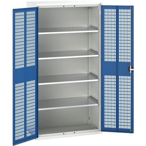 Dielenská skriňa policová Bott Verso, drôtené dvere, 4 police, 200 x 105 x 55 cm, šedá-modrá