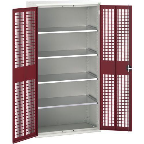 Dielenská skriňa policová Bott Verso, drôtené dvere, 4 police, 200 x 105 x 55 cm, šedá-červená