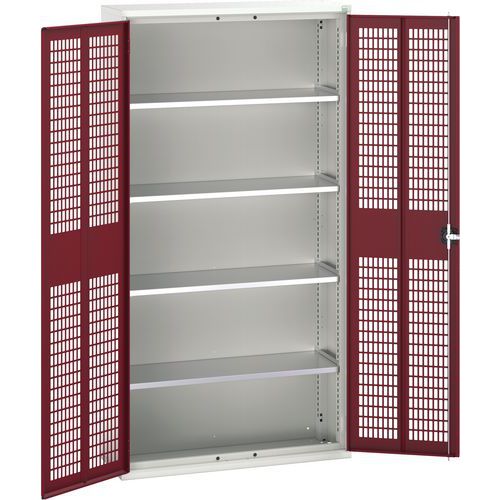 Dielenská skriňa policová Bott Verso, drôtené dvere, 4 police, 200 x 105 x 35 cm, šedá-červená