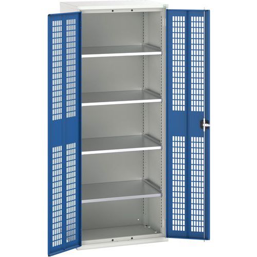 Dielenská skriňa policová Bott Verso, drôtené dvere, 4 police, 200 x 80 x 55 cm, šedá-modrá
