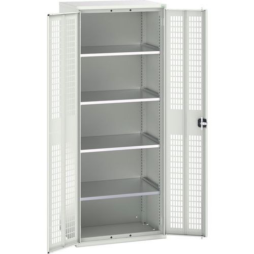 Dielenská skriňa policová Bott Verso, drôtené dvere, 4 police, 200 x 80 x 55 cm, šedá-šedá