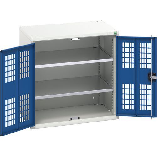 Dielenská skriňa policová Bott Verso, drôtené dvere, 80 x 80 x 55 cm, 2 police, šedá-modrá