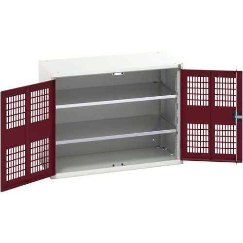 Dielenská skriňa policová Bott Verso, drôtené dvere, 80 x 105 x 55 cm, 2 police, šedá-červená