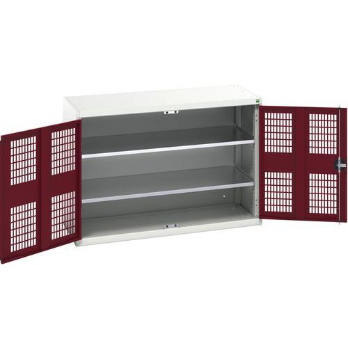 Dielenská skriňa policová Bott Verso, drôtené dvere, 2 police, 90 x 130 x 55 cm, šedá-červená
