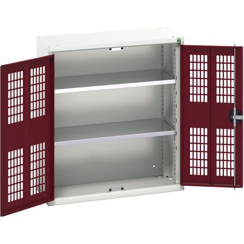 Dielenská skriňa policová Bott Verso, drôtené dvere, 90 x 80 x 35 cm, 2 police, šedá-červená