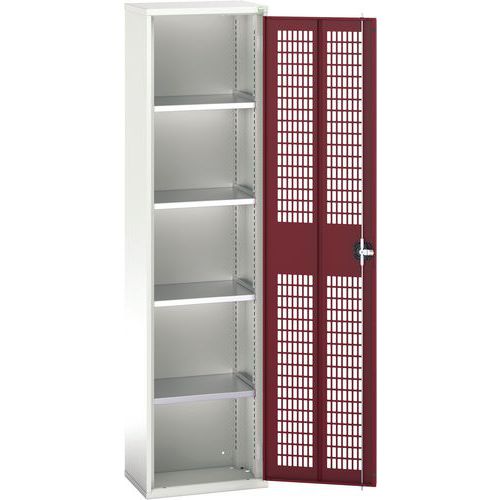 Dielenská skriňa policová Bott Verso, drôtené dvere, 200 x 52,5 x 35 cm, 4 police, šedá-červená