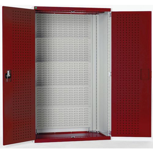 Dielenské skrine s perfo panelmi pre držiaky na boxy/náradie, 200 x 105 x 52,5 cm, šedá-červená