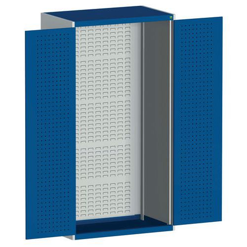 - Zadná stena s perforáciou na zavesenie plastových boxov a vnútornej strany dverí na uchytenie držiakov náradia.