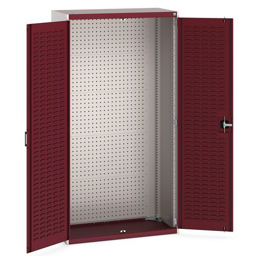 Dielenské skrine s perfo panelmi pre držiaky na náradie/boxy, 200 x 105 x 52,5 cm, šedá-červená