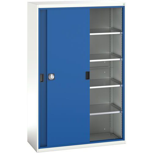 - Kovové dielenské skrine s posuvnými dverami sú vhodné do miest s obmedzeným priestorom.