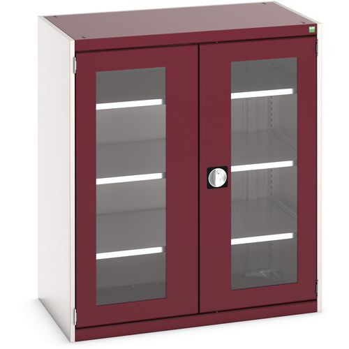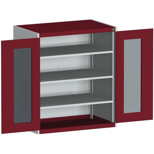 Dielenská skriňa s priehľadnými dverami Bott Cubio, 120 x 105 x 65 cm, 3 police, šedá-červená