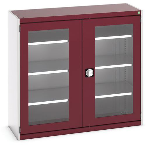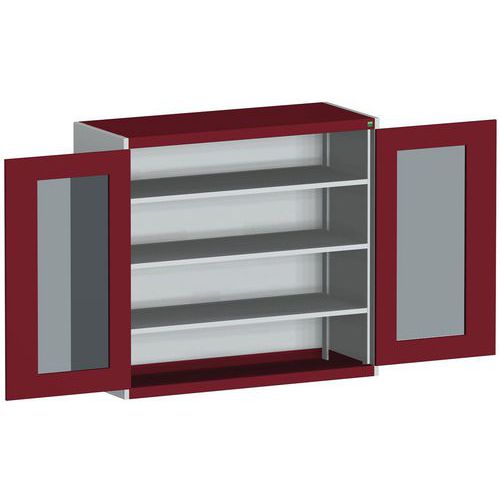 Dielenská skriňa s priehľadnými dverami Bott Cubio, 120 x 130 x 52,5 cm, 3 police, šedá-červená