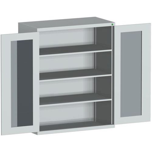 Dielenská skriňa s priehľadnými dverami Bott Cubio, 160 x 130 x 65 cm, 3 police, šedá-šedá